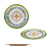 The Home Essential Melamine Clay Talavera D-Plate, 10.75 inches, is a Talavera- inspired design. This plate resembles traditional clayware, combining earthy charm with the durability of melamine, ideal for serving main courses in style.