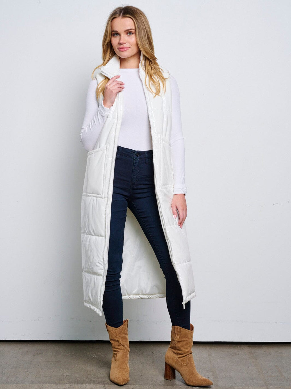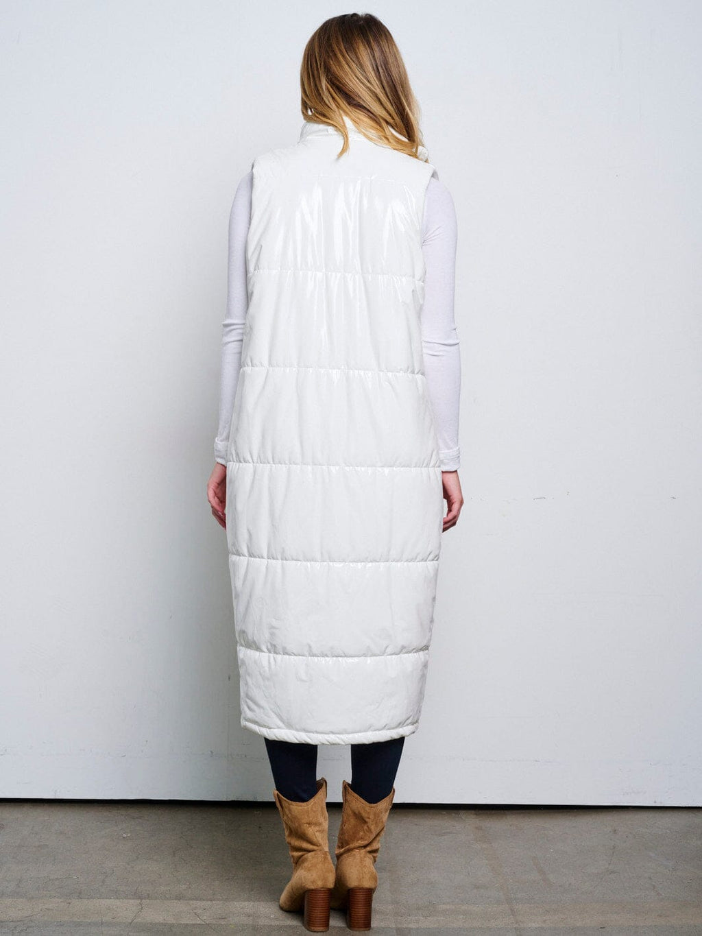 The Women's Sleeveless Zip Up Front Pockets PU Pleather Long Puffer Vest is a popular choice among boutiques for its combination of trend appeal, comfort, and versatility. This piece is a bestseller with boutiques due to its high markup potential, reliable reorders, and eye-catching display value. Upgrade your retail offerings with this must-have vest that will surely be a hit with your customers.