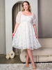 PLUS SIZE SHORT PUFF SLEEVE FIT & FLATE EMBROIDERY DETAILED MIDI DRESS