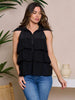 Our Women's Sleeveless Tiered Button Up Ruffle Top is a bestseller with boutiques for its combination of style and versatility. With its comfortable and durable fabric, on-trend design features, and potential for high markups, this top is a reliable choice for retailers. Its appeal to a variety of styling options makes it a must-have for any boutique, whether for brunch, gifting, fall layering, or event styling. Display this top in-store or online to attract customers and increase sales. Don't miss out on this popular and profitable item.