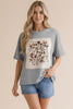 ROUND NECK DROP SHOULDER SHORT SLEEVE OVERSIZED LOOSE FIT COTTON SLUB KNIT TOP WITH VINTAGE FLORAL SCREEN PRINTED CROCHET EDGE PATCHWORK