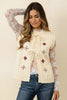 SCALLOP ROUND NECK TIED BOW FRONT EMBROIDERED FLORAL SWEATER VEST
