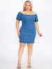 PLUS SIZE SHORT SLEEVE BUTTON CLOSURE BODYCON DENIM MINI DRESS