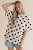 ROUND NECK DROP SHOULDER SHORT SLEEVE OVERSIZED LOOSE FIT POLKA DOT PRINT FRENCH TERRY KNIT TOP
