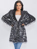WOMEN'S LONG SLEEVE BUTTON CLOSURE FRONT POCKETS FRINGE SEQUINS BLAZER