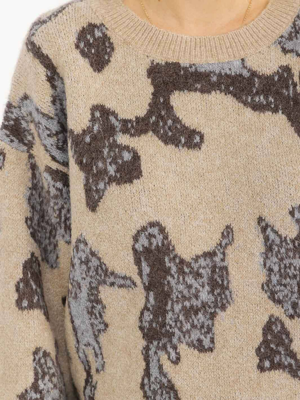 Embrace contemporary style with this women's print knit pullover, a cozy choice for your boutique's fall collection. Crafted with a blend of acrylic, polyester, and spandex, this pullover offers a comfortable fit while ensuring versatility for layering over shirts or pairing with jeans. Ideal for cool weather, it features a classic long sleeve design with a modern print that catches the eye. Perfect for casual outings or adding a pop of style to any wardrobe, this piece is a must-have for retailers looking to offer trend-forward options.