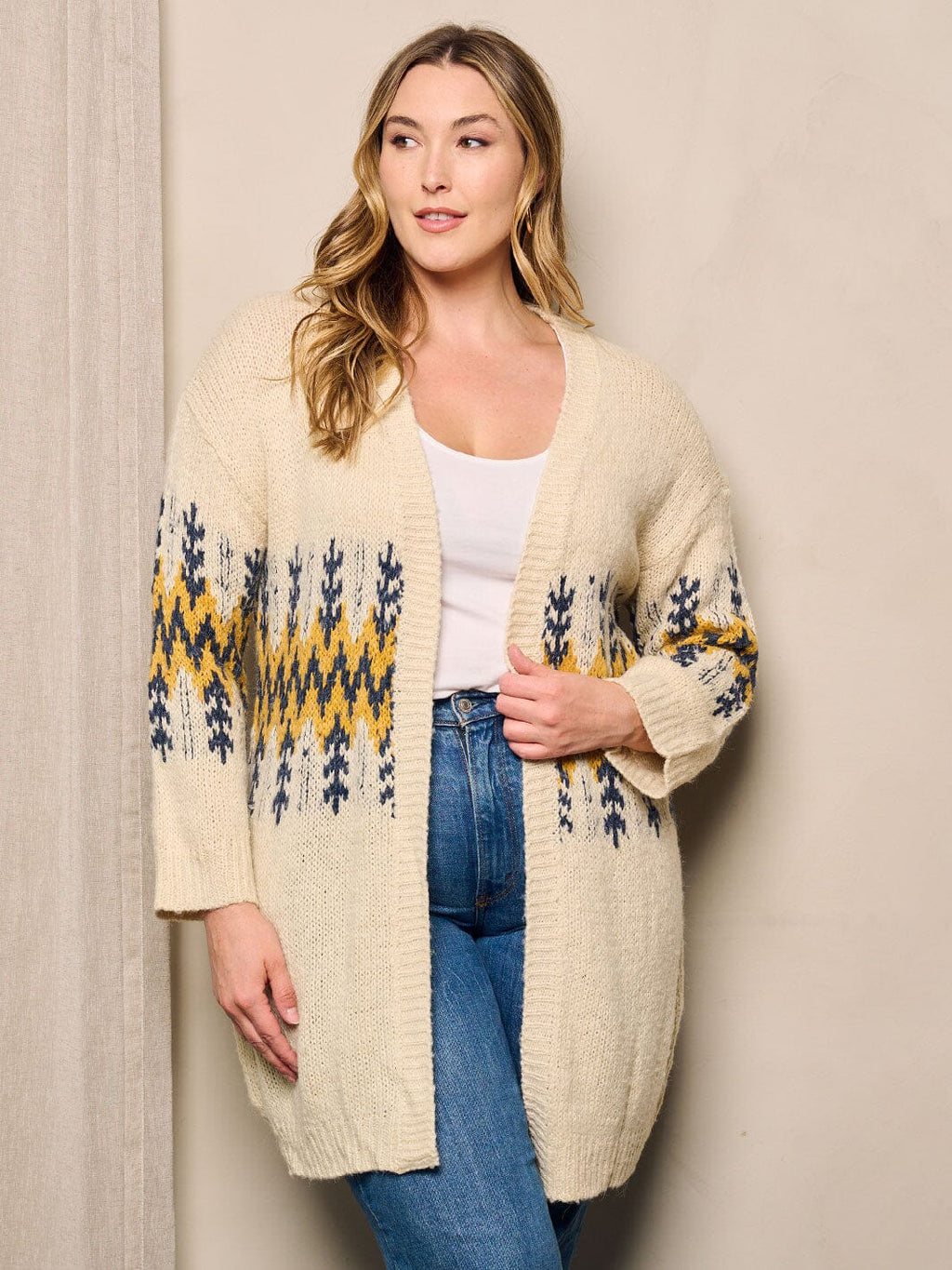 Introducing our vibrant plus-size open-front cardigan with long sleeves and an exciting mix of prints. This piece offers a flattering silhouette and a comfortable, lightweight feel, making it perfect for layering over basic tees or pairing with jeans for a casual yet stylish look. Ideal for boutique shelves, this trend-forward cardigan is a must-have for fashion-forward retailers looking to enhance their collection with eye-catching designs.