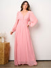 Introducing the elegant women's maxi dress featuring long puff sleeves and a captivating V-neckline. Crafted from luxurious polyester, this dress boasts an open back that exudes sophistication, making it perfect for evening soires or upscale events. A trend-forward piece that promises to be a bestseller with boutiques, it?s a must-have for retailers looking to offer clients a blend of comfort and style.