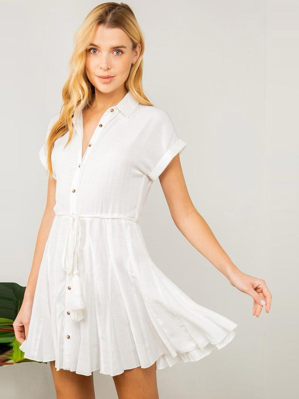 Our Women's Short Sleeve Button Up Mini Dress is a top-seller among boutiques due to its high markup potential, reliable reorders, and trend-forward appeal. With its versatile styling options, this dress is a must-have for retailers looking to cater to a wide customer base. Display it online or in-store for a guaranteed increase in sales. Don't miss out on this customer-favorite piece - order now!