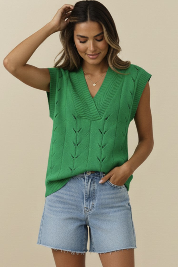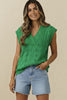 V NECK DOLMAN SHORT SLEEVE CABLE PATTERN SOLID SWEATER KNIT TOP