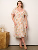 PLUS SIZE SHORT PUFF SLEEVE ELASTIC WAIST POCKETS TIERED FLORAL MIDI DRESS