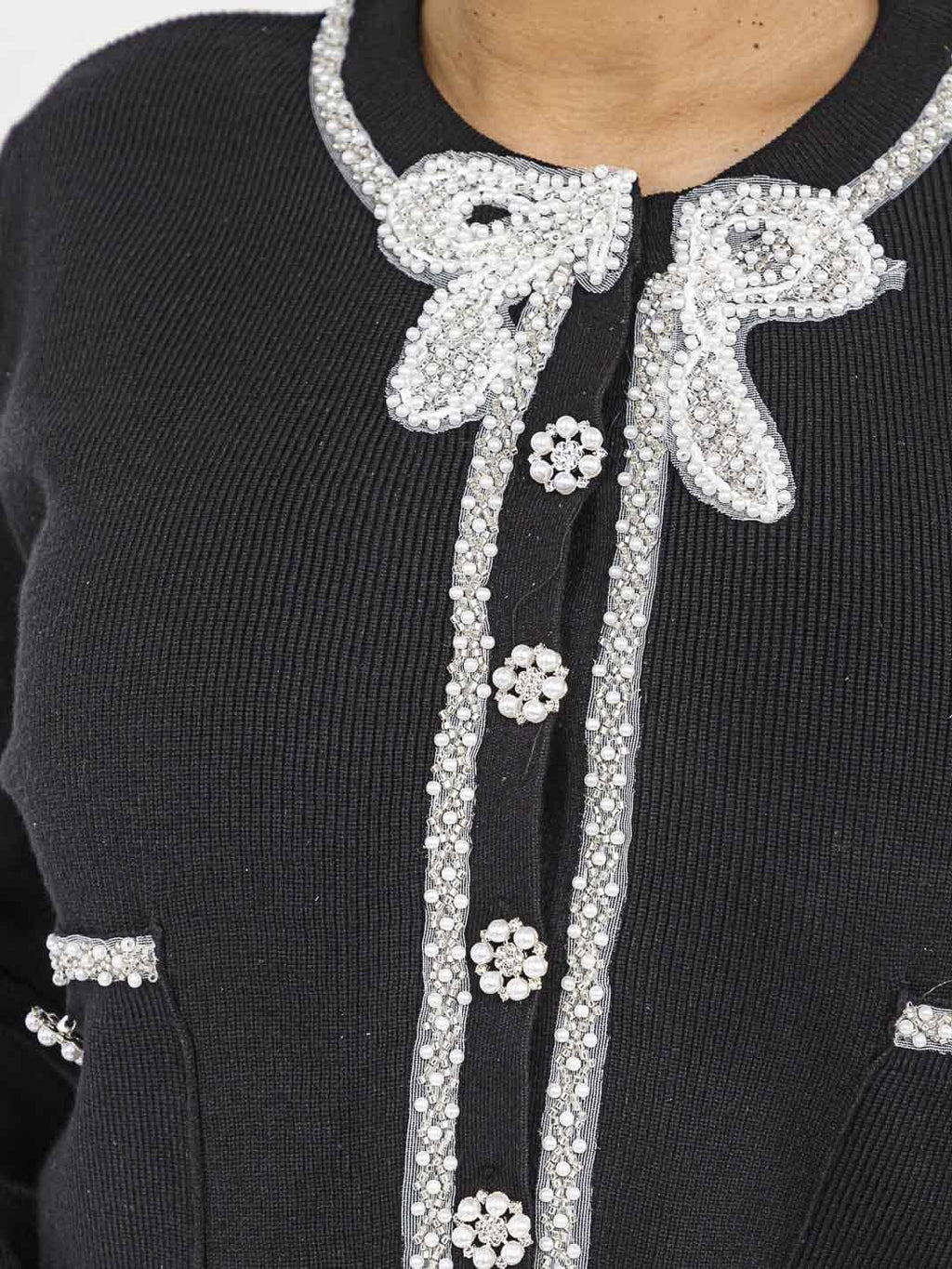 WOMEN'S LONG SLEEVE BLOUSE & ELASTIC WAIST SKIRT PEARL DETAILED 2PC.SET