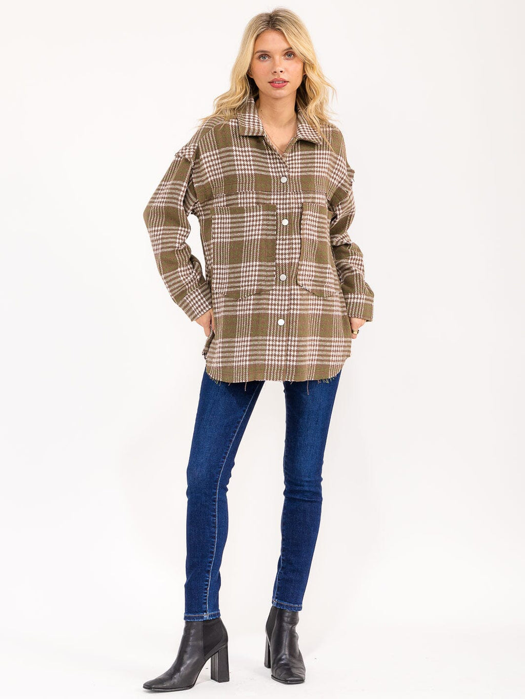 Bring seasonal style to your boutique with this plaid long sleeve snap-up shirt jacket, expertly crafted for easy layering and everyday wear. Designed in soft, durable polyester, this versatile piece features button closures, classic front pockets, and a modern, relaxed silhouette that’s trending with contemporary shoppers. Its longer length offers a flattering fit for a range of body types, making it an essential addition to any women’s tops or outerwear collection. Perfect for casual outings or work-ready ensembles, this must-have bestseller is ideal for fashion-forward retailers seeking high-demand inventory.