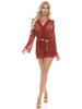 WOMEN'S LONG BELL SLEEVE SURPLICE ELASTIC WAIST LACE ROMPER
