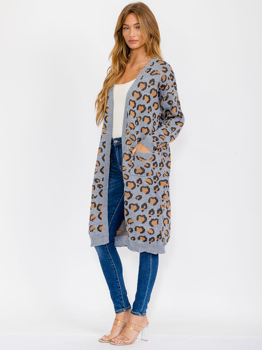 Introducing our trend-forward layering piece, the Women's Long Sleeve Open Front Pockets Animal Print Cardigan. Made from 100% Acrylic, this cardigan features an open front design, long sleeves, and two convenient pockets. Perfect for layering over any outfit, this cardigan is a bestseller with boutiques and a must-have for retailers.