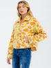 Features:Long sleeve, zip-up front, floral print, sherpa fabric, versatile styling, perfect for layering, ideal for fall and winter.