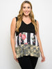 This plus-size floral and animal print sleeveless top features a flattering V-neck design, making it a versatile addition to any fashion-forward retailer's collection. Crafted from high-quality polyester and spandex, the top offers a comfortable fit with a touch of stretch, ideal for casual outings or layered under cardigans for a sophisticated look. A must-have for any boutique, this piece is sure to be a bestseller with its eye-catching design and easy styling options.