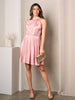 WOMEN'S SLEEVELESS MOCK NECK FRONT KEYHOLE SATIN MINI DRESS