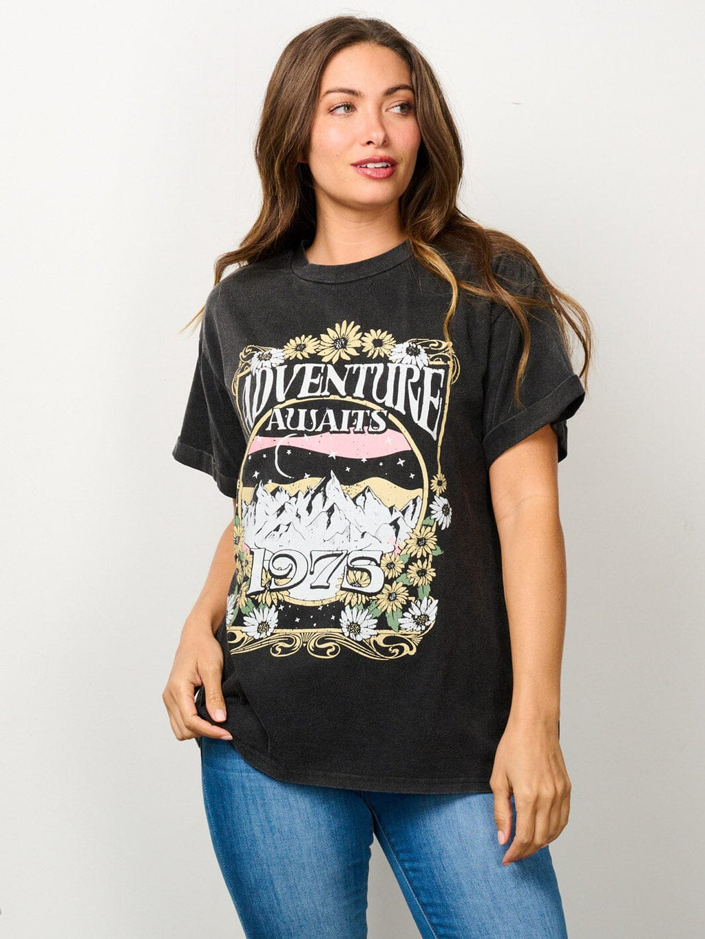 Embrace effortless style with our women's short sleeve graphic tee, featuring a relaxed silhouette and a washed finish for that perfect lived-in look. Crafted from a soft cotton blend, this top offers both comfort and versatility, making it an ideal choice for casual outings or trendy layering. As a bestseller with boutiques, this piece is a must-have for retailers seeking to capture the graphic tee trend.