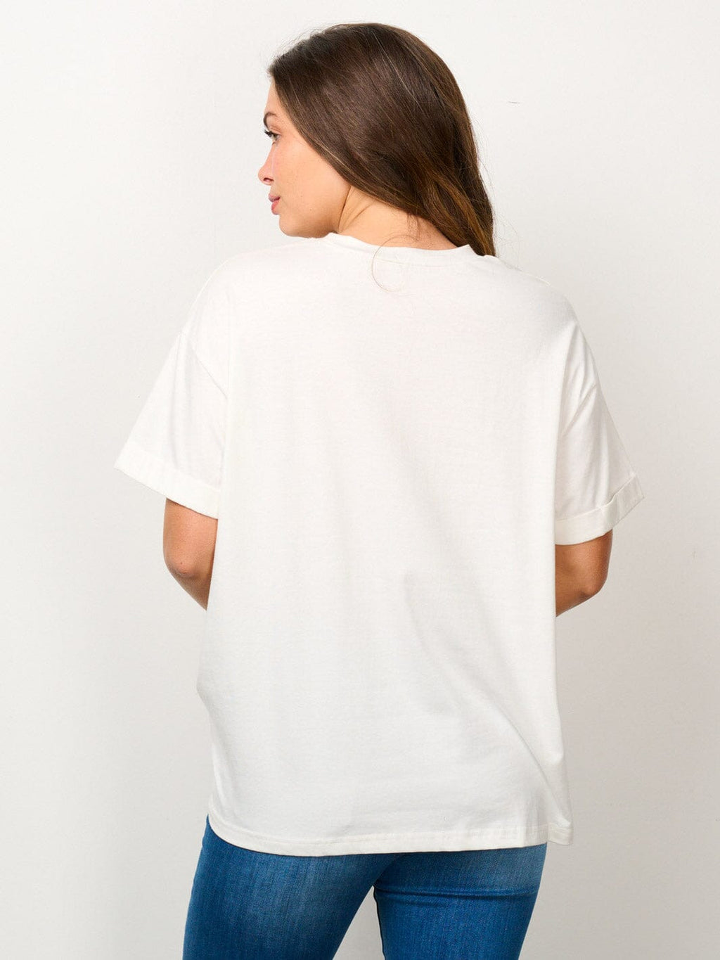 60% cotton, 35% polyester, 5% spandex blend | Comfortable and flattering fit | Unique graphic design | Short-sleeve silhouette | Easy to style for any occasion | Perfect for year-round wear | Popular with boutiques and fashion resellers
