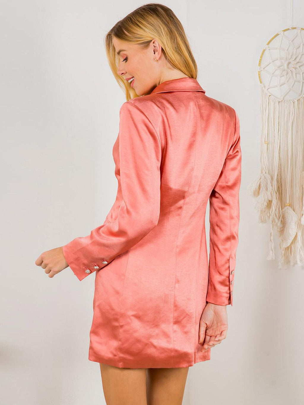 Women's Long Sleeve V-Neck Button Closure Satin Mini Dress is a popular choice among boutique owners due to its versatility and trend-forward design. With its luxurious fabric and flattering silhouette, this dress has a high markup potential and is a reliable reorder for retailers. Its stylish v-neckline and button closure make it a must-have for any fashion-forward customer, and its easy styling options make it a valuable addition to any in-store or online display. Don't miss out on offering your customers this must-have dress in your boutique's collection. Order now and watch it fly off your shelves.