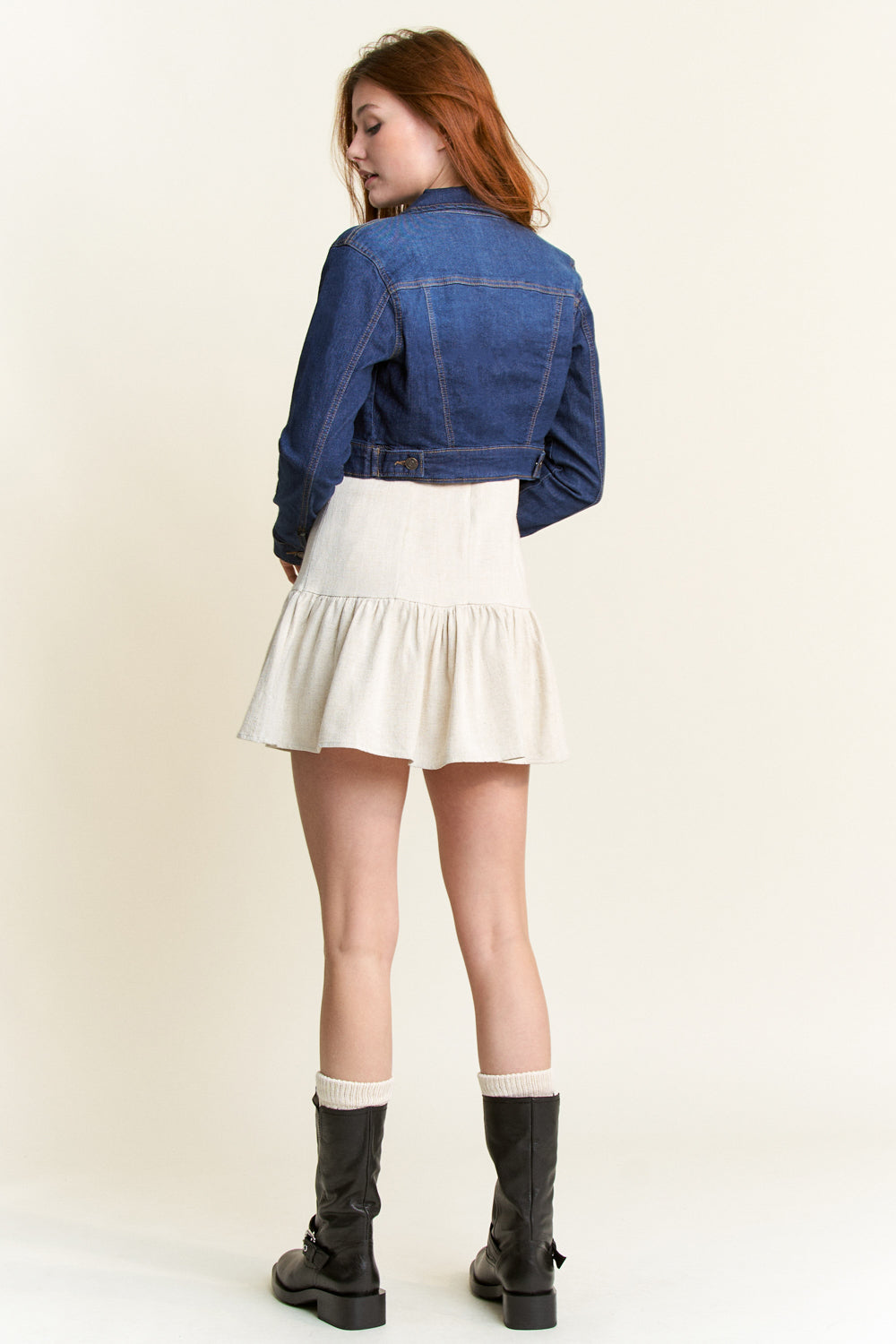 Crop denim Jacket with stone wash & hand sanding.