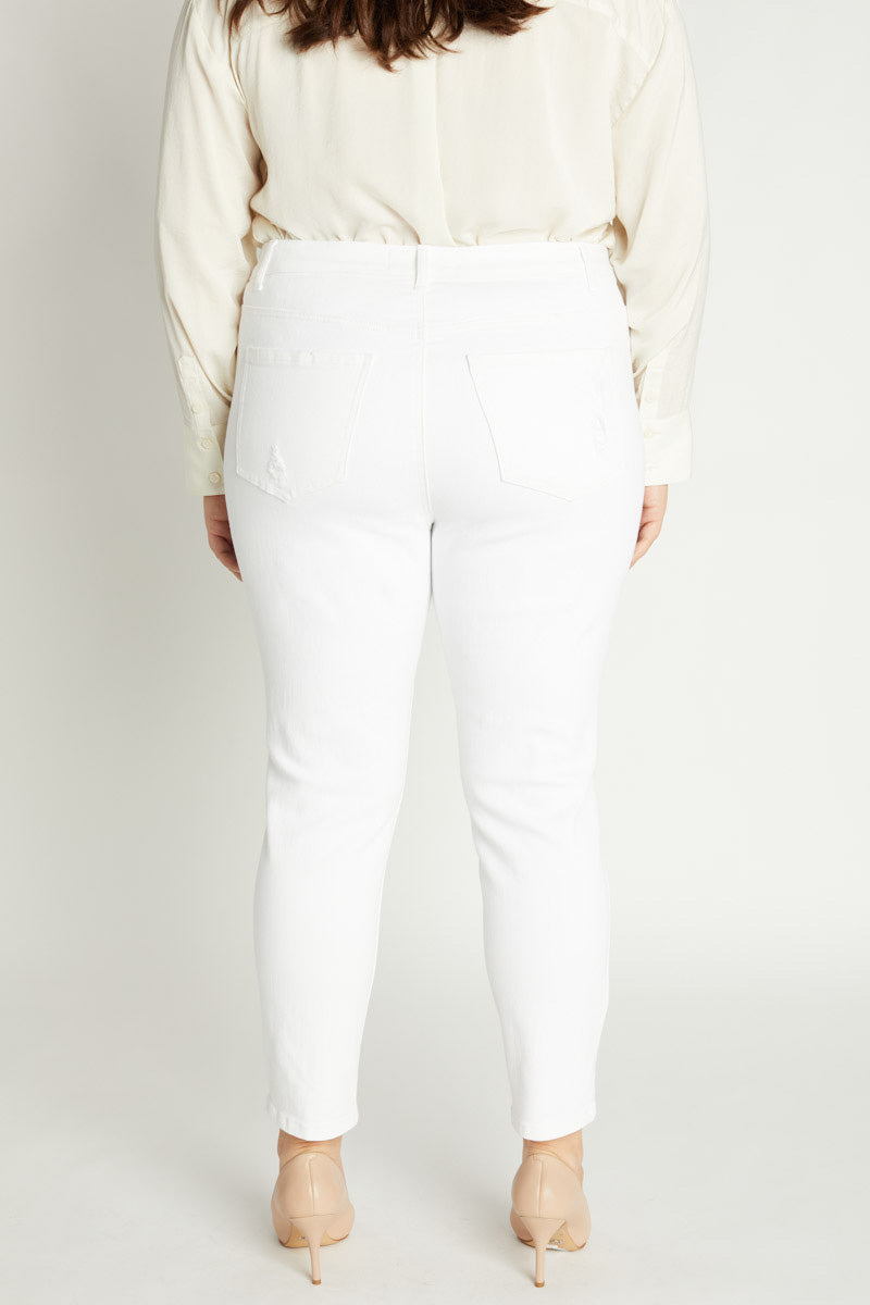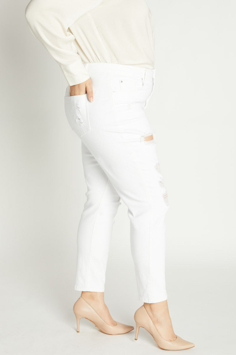 High Rise Destructed Ankle Skinny Jeans.