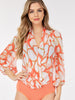 Features:Soft rayon-spandex blend, figure-flattering surplice neckline, versatile multi-print design, 3/4 sleeve comfort, easy care instructions, perfect for layering, trend-friendly silhouette.
