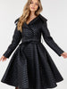 Features:100% Polyester, self-tie waist, button closure, midi length, long sleeves, padded shoulders, versatile styling options.