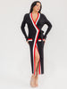 Features:premium viscose-polyester ribbed fabric, bodycon wrap silhouette, long sleeves for seasonless wear, eye-catching colorblock pattern, maxi length for elegant coverage, versatile for cocktail or daytime looks, top pick for women's boutiques and resellers