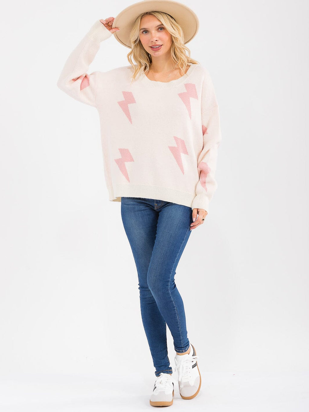 Features:cozy cotton-acrylic blend, oversized silhouette for effortless layering, long sleeves for transitional weather, easy hand-wash care, available in pink and oatmeal, versatile fit in S/M and M/L, perfect for casual or dressy styling