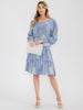 WOMEN'S LONG SLEEVES FRONT POCKETS TIERED FLORAL MIDI DRESS