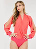 Introducing our bestselling Women's Long Slit Sleeve Surplice Bodysuit, perfect for retailers and boutique owners looking for a trend-forward layering piece. Made with 97% Polyester and 3% Spandex, this bodysuit is comfortable and versatile, making it a must-have for any wardrobe.