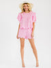 WOMEN'S SHORT SLEEVE BLOUSE & ELASTIC WAIST MINI SHORTS EYELET 2PC. SET