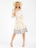 WOMEN'S 3/4 SLEEVE BUTTON UP SELF TIE MULTI PRINT MIDI DRESS