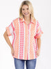 WOMEN'S SHORT SLEEVE FRONT POCKET BUTTON UP HIGH-LOW PRINT BLOUSE