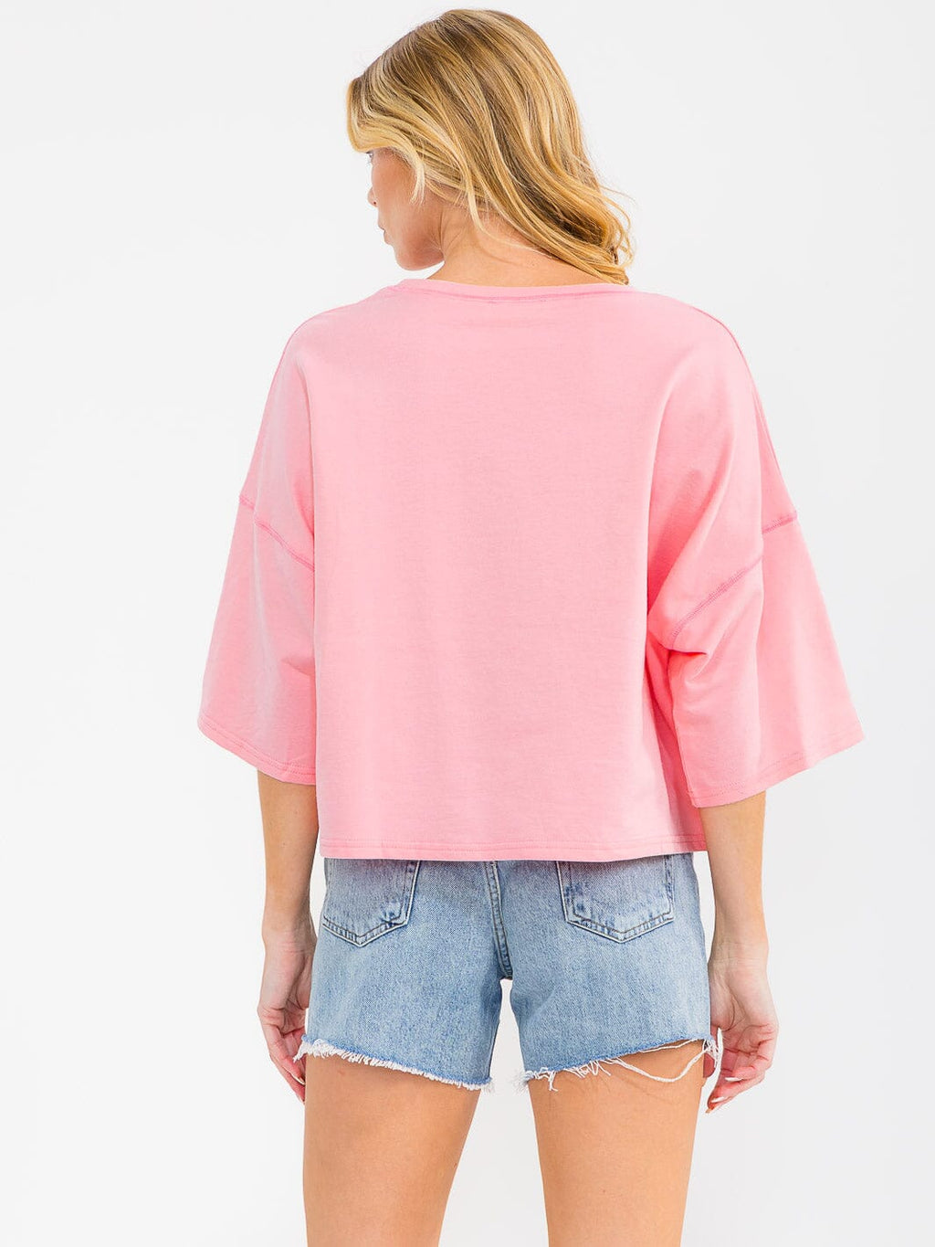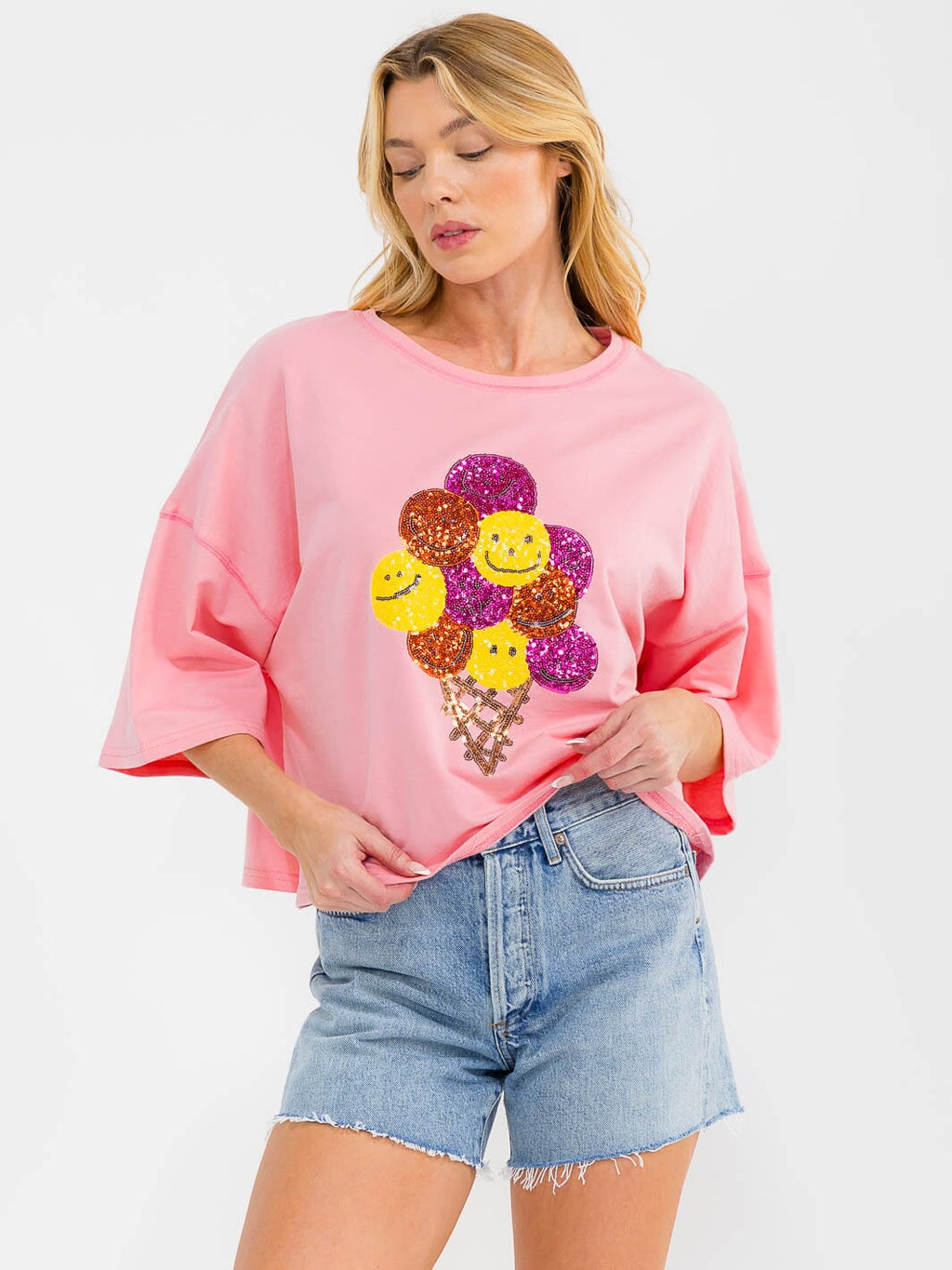 Discover the charm of our Women's Oversized Graphic Top, a fashion-forward piece that combines comfort with style. Crafted from 100% cotton, this top features eye-catching sequin graphics, making it an ideal choice for casual outings or layering with your boutique's chic accessories. Whether paired with jeans for a laid-back look or dressed up with a skirt, this top is a versatile addition to any wardrobe.