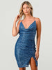 WOMEN'S SLEEVELESS COWL NECK BODYCON OPEN BACK SEQUINS MINI DRESS