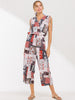 WOMEN'S SLEEVELESS V-NECK SURPLICE POCKETS MULTI PRINT JUMPSUIT