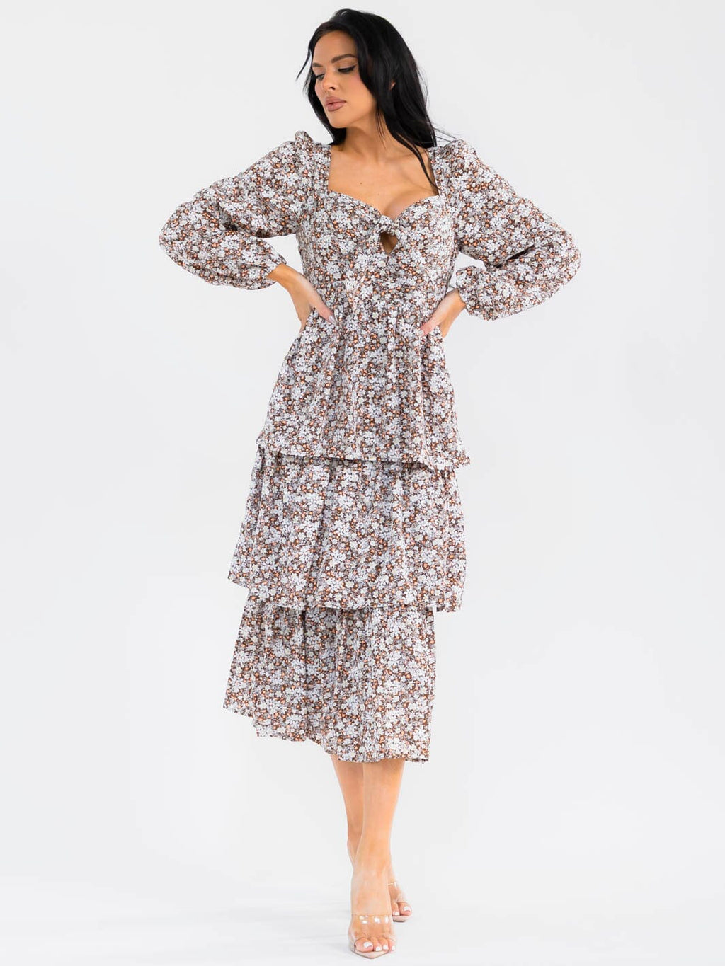Discover the elegance of our Women's Long Sleeve Tiered Floral Embroidered Maxi Dress, a perfect choice for fashion-forward retailers. This exquisite dress features a tiered silhouette with intricate floral embroidery, offering an open-back design that adds a touch of allure. Ideal for chic boutiques, this piece is perfect for event styling and spring collections, combining comfort with high-fashion appeal.