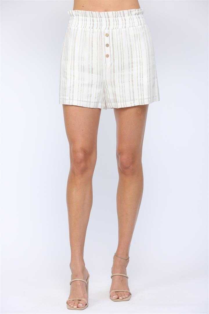 stripe with lurex linen blend short sleeve shirt and short 2pcs
