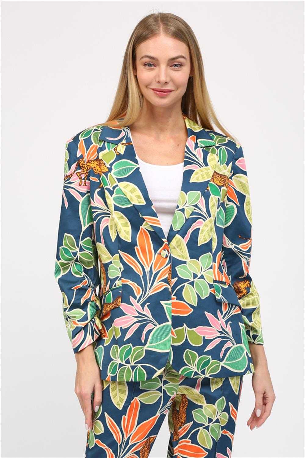 satin crop blazer / satin pleated wide leg pants 2pcs