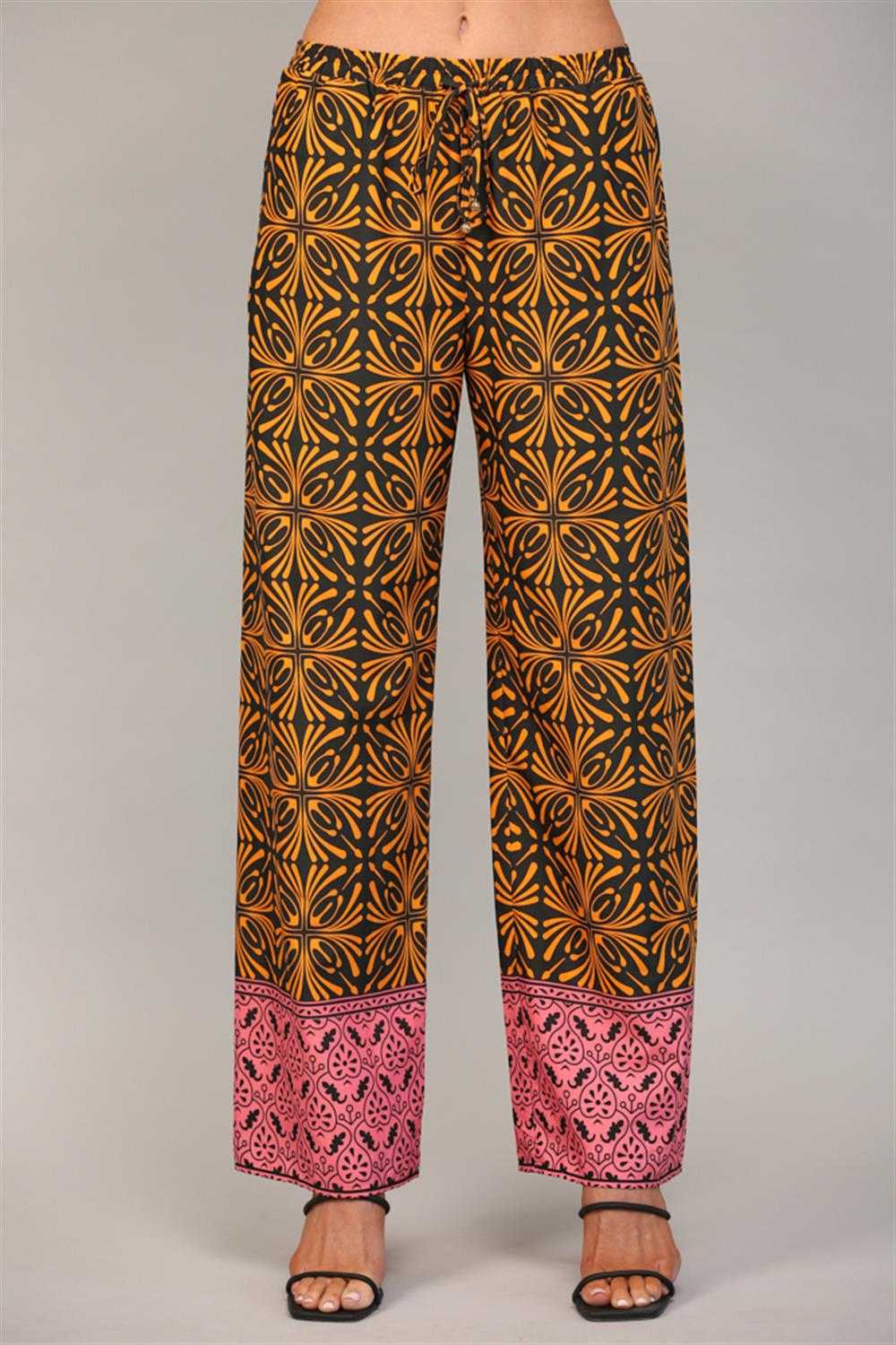 border print button down shirt and wide leg pants 2pcs